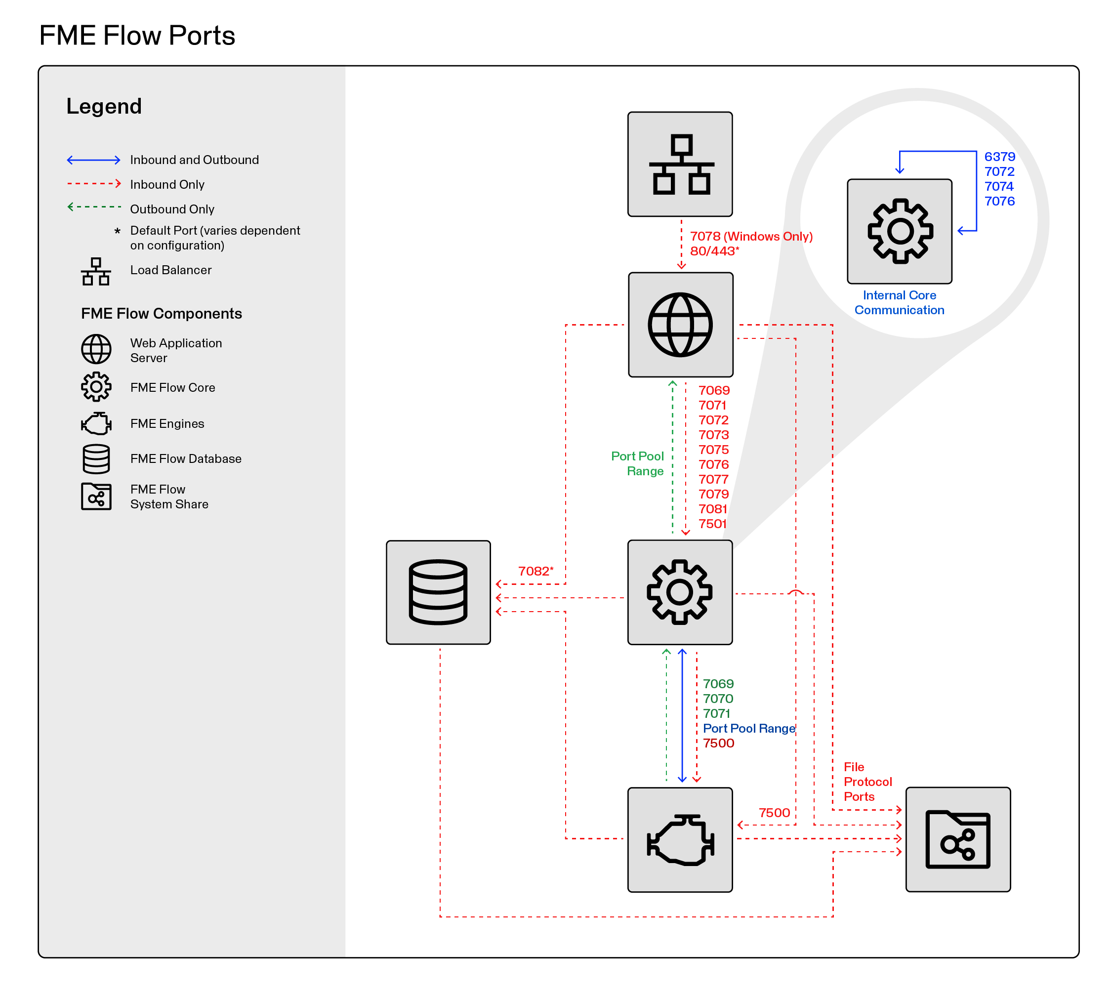 | 7077 | FME Flow configuration and Backup & Restore requests. | FMEConfiguration.exe | FMEConfiguration |