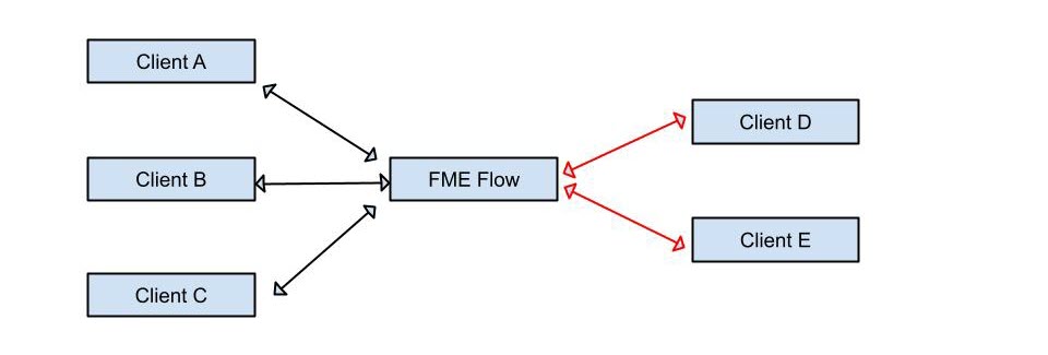 For applications that wish to have bi-directional communication, FME Flow supports a session based “chat” protocol. This protocol leverages FME Flow's native WebSocket support.